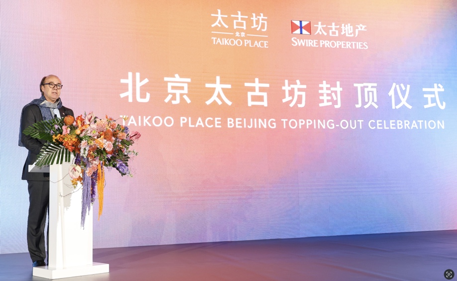 太古地产行政总裁彭国邦在封顶仪式上致辞,分享项目愿景。