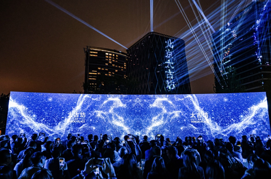 到场宾客齐聚北京太古坊,共同欣赏绚烂的夜间灯光秀。