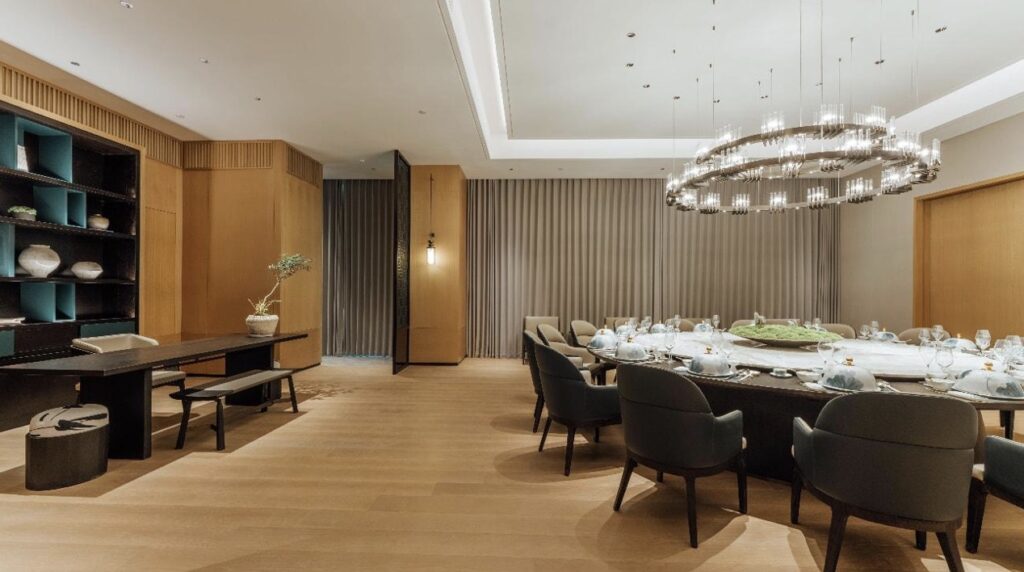而御味中餐厅则开启了一场味蕾旅行:它强调食材本味,与当地渔民合作确保海鲜新鲜纯净(供应链来自健康海域),提供亲民格调的中式佳肴(如本地特色海鲜),满足家庭聚会至商务宴请(二层设有6个豪华包厢,78个餐位)。紧邻的桃源小馆(零点餐厅,二层148㎡,32个餐位)以世外桃源意境主打本地特色美食,是朋友小聚的理想之选。